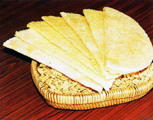 奶皮子,是把馬、羊、牛和駱駝鮮乳倒入鍋中慢火微煮,等其表面凝結(jié)一層臘脂肪,用筷子挑起掛通風(fēng)處晾干即為奶皮子。屬鮮奶中的精華奶皮,蒙古語稱“烏如木”,是奶食品系列中的佳品,營(yíng)養(yǎng)價(jià)值頗高。