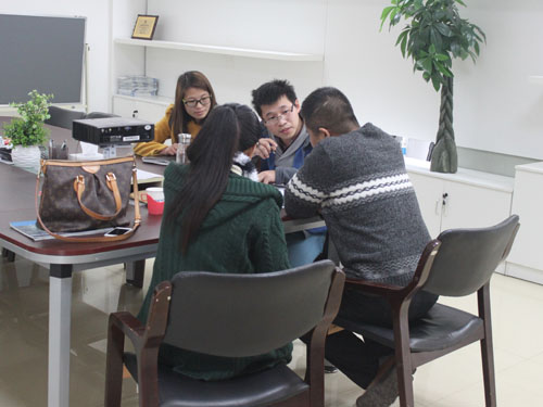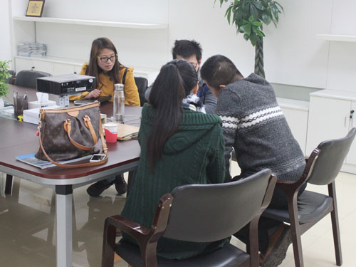 豆?jié){生產(chǎn)線設(shè)備,來我公司考察并與業(yè)務(wù)員和技術(shù)工程師進行具體需求的洽談。
