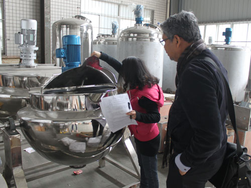 經(jīng)過與業(yè)務(wù)員的多次溝通與確認(rèn),新加坡客戶于2015年3月12日在我公司下單一臺600L高壓蒸煮鍋。目前設(shè)備已接近收尾工作,客戶來我公司驗貨,業(yè)務(wù)員熱情接待并為其講解了我公司的其它機械設(shè)備。