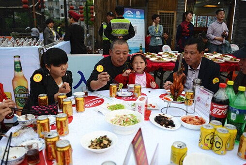 在這兒有6道冷盤、12道運河名菜組成的運河美食嘉年華典藏菜肴。設(shè)席30桌一字?jǐn)[開100米,憑票入席,300名幸運的中外游客與杭城市民一邊在品味豐盛的運河名菜。